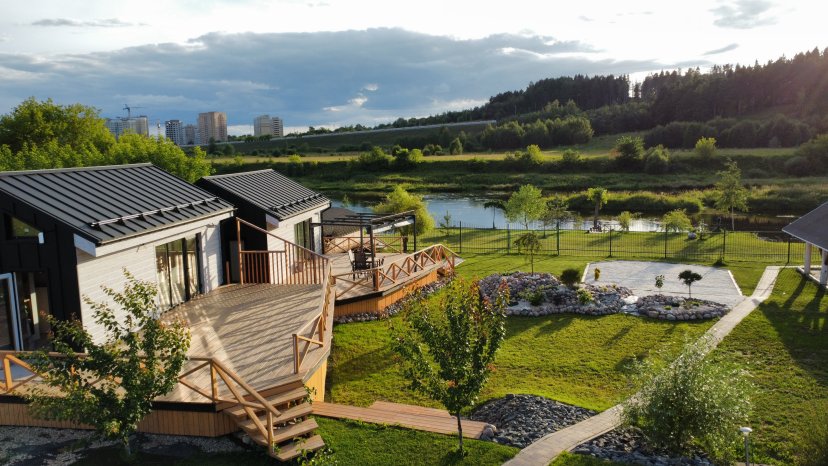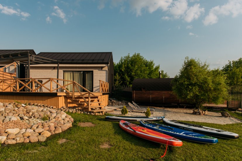 С одной стороны 80 соток дизайнерского участка с интересными ландшафтными решениями, с другой нетронутое русло живописной излучены Москва-реки. На другом берегу от видового домика «Карелия» располагается памятник природы «Мозжинский овраг». Здесь чистый воздух и много зелени. В пешей доступности поле засеянное рожью, которое к осени станет золотым и будет идеальной локацией для закатной фотосъемки.